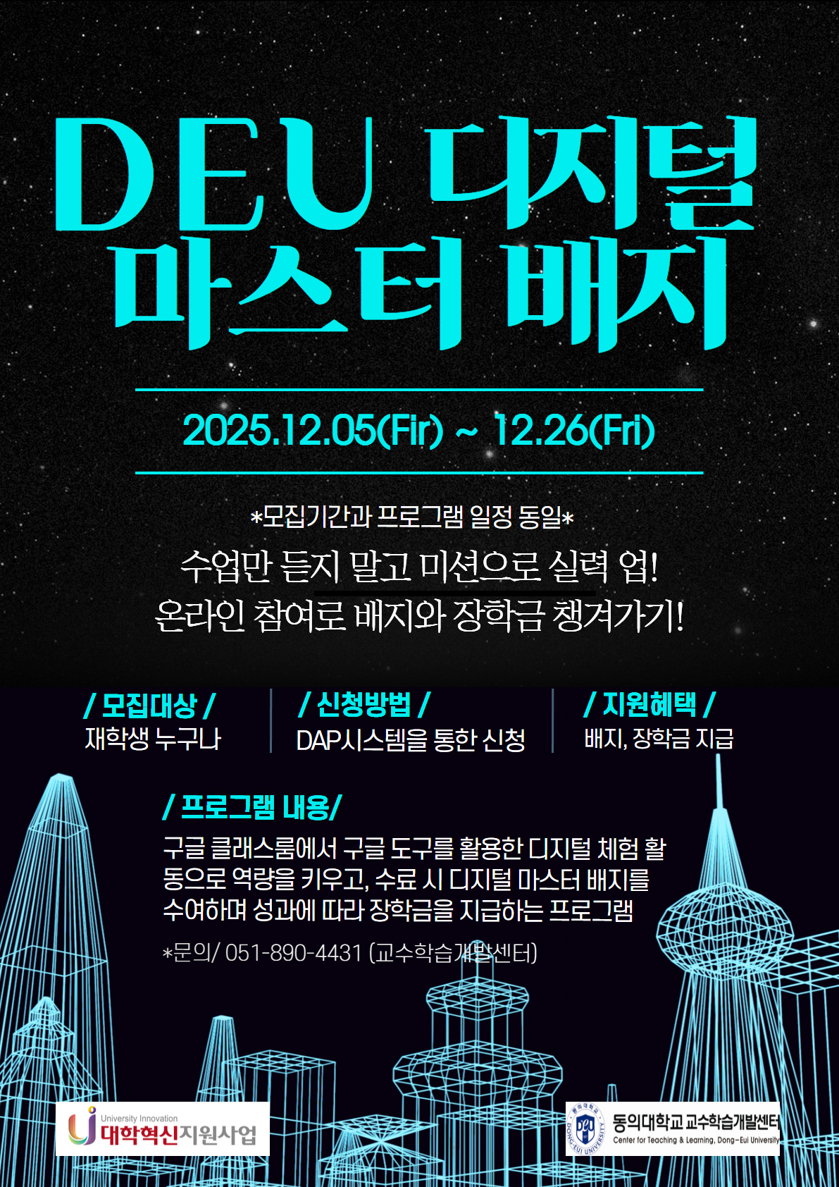 [대학혁신지원사업] 2025학년도 DEU 디지털 마스터 배지 신청 안내