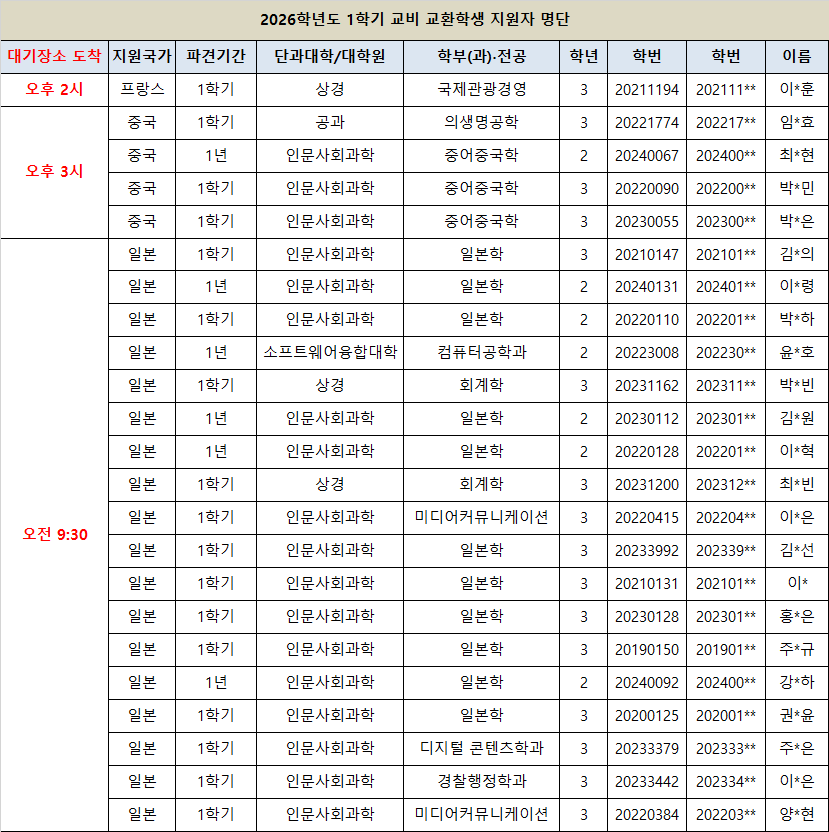 2026학년도 1학기 교비 교환 학생 면접을 다음과 같이 안내 드립니다.